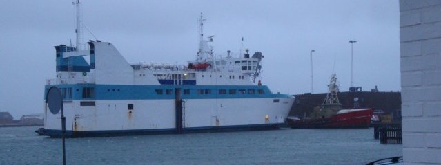 Tirsdag eftermiddag bemærkede en forbipasserende, at færgen nærmest lå midt i bassinet. De bageste fortøjninger kunne åbenbart ikke holde til det kraftige blæsevejr.