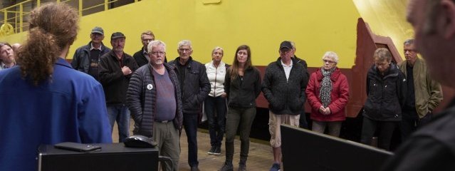 Som nævnt faldt mødet med finansministeren tidsmæssigt sammen med Crestwings åbent hus-arrangement, og også her var der stor interesse for at høre mere om det banebrydende anlæg. Gæsterne fik først en introduktion til hele historien og formålet med bølgeenergianlægget, der er udviklet af Ruth Bloom og hendes nu afdøde mand, Henning Pilgaard.