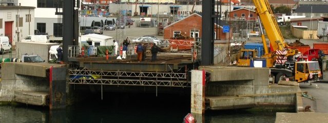 Jernbanefærgen Stena Scanrail er p.t. sat ud af drift. Færgen skal, efter hvad jeg har hørt, i DOK, men ikke nok med det. Færgelejet bag ved Kattegat Siloen skal renoveres for et ganske pænt beløb. Et beløb, der flytter sig lidt, alt efter hvor langt man kommer ned rust, råd og anden tæring har sat sine spor.