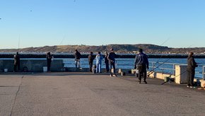 Ved havnen er der udsigt til de mange smukke sejlskibe, og der kan desuden nydes et sildebord i det store hvide telt, og der er spegepølse til børnene.