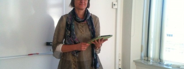 - Det betyder, at kursisterne kan bladre i en langt større mængde relevant materiale på kurset, og det de gerne vil bruge, kan de sende hjem til sig selv fra iPad'en, fortæller underviser Marianne Nielsen.