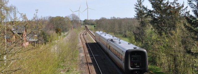 De nye vindmøller - hvis de bliver sat op - her set fra jernbanebroen i Kvissel.