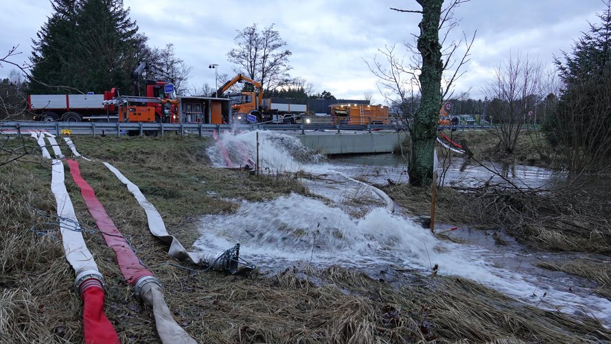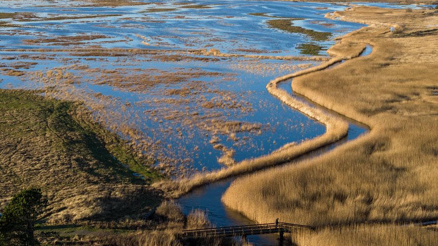 Da der er højvande på kysten - samtidig med et ganske lille fald på den lange strækning ud til kysten - er der naturligvis meget vand i omkringliggende områder.