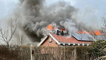 Villa-brand på Digetsvej i Strandby: Kraftig brand i tagkonstruktionen