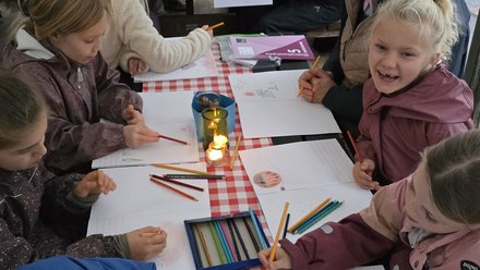 Dagplejere fra Strandby/Elling og deres børn hyggede sig i Hermans Hule