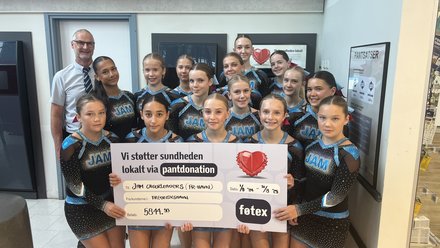 Jam Frederikshavn Cheerleaders modtager pantdonation fra Føtex-kunder