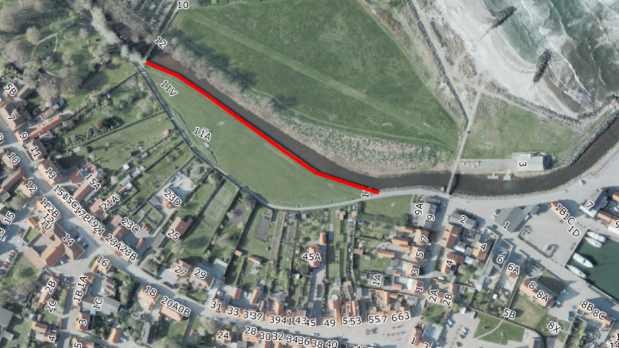 Gangstien står på pæle langs bredden i Sæby Å. Flere steder er den eksisterende konstruktion så svækket, at der inden for 12 måneder er betydelig risiko for, at gangstien må lukkes af sikkerhedsmæssige årsager.