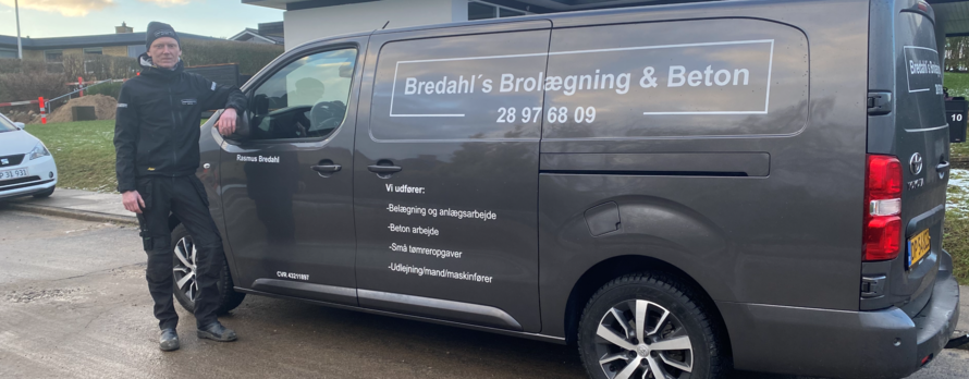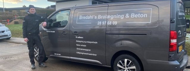 Bredahl´s Brolægning og Beton er navnet på Rasmus Bredahls nystartede brolægger- og entreprenørfirma i Frederikshavn. Firmaet udfører alt indenfor belægning og anlægsarbejde, betonarbejde og små tømreropgaver.