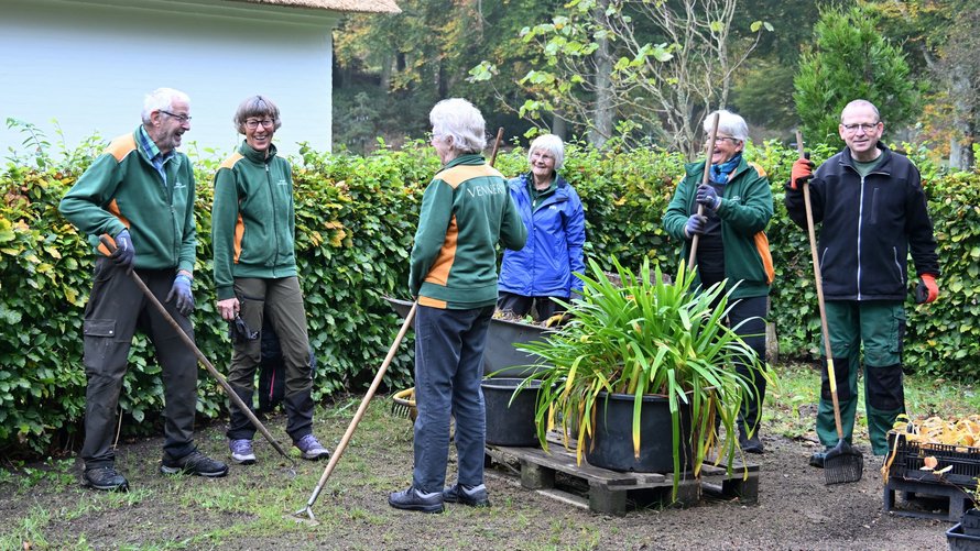 - Efter 30 år er der heldigvis stadig frivillige, der arbejder for Haven, og enkelte har været med alle årene. Nogle er faldet fra – nye er kommet til, så i dag er der cirka 20-25 aktive, der hver fredag formiddag og i sommerhalvåret også onsdag aften kan ses i de grønne trøjer arbejde rundt om i Haven. Ud over disse aktiver har foreningen også mange passive medlemmer, som via deres kontingent støtter Haven økonomisk. Foreningen har i dag cirka 200 medlemmer, oplyser formand Inger Nielsen, Bangsbo Botaniske Haves Vennekreds.