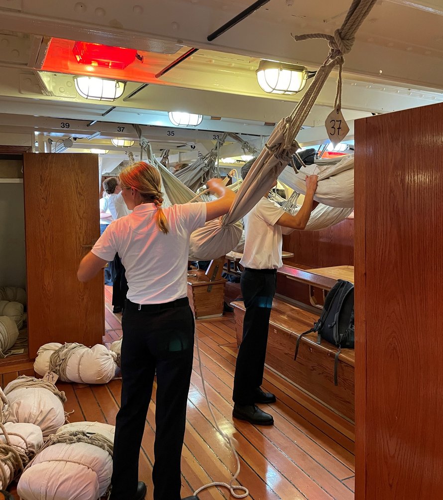 På MARTEC har skoleskibseleverne i flere uger forberedt sig på det 11 uger lange togt, som denne gang går via Dublin, Gran Canaria og Azorerne, inden kursen igen lægges mod hjemhavnen. Det ekstraordinære togt var planlagt til at sejle langs USA’s kyster i 2020, hvor det blev aflyst på grund af COVID-19.