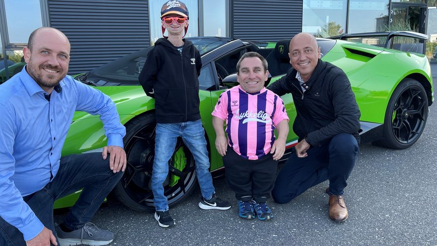 Jesper Sørensen, der for 15 år siden blev landskendt som "drengen i den gamle krop", fik fredag 23. juni en tur i Mads Andersens limegrønne Lamborghini i Frederikshavn. Det samme gjorde Jespers makker, Dan Jakobsen, Danmarks mindste mand. Det blev årets mest sete video med over 87.400 visninger.