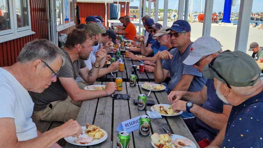 Men ikke helt. Sejlerhyggen fortsatte, for nu skulle der nydes noget lækkert mad og en forfriskning, mens sejladsen og alle de oplevelser, sejlerne hvde haft i løbet af dagen, blev delt over middagsbordet.