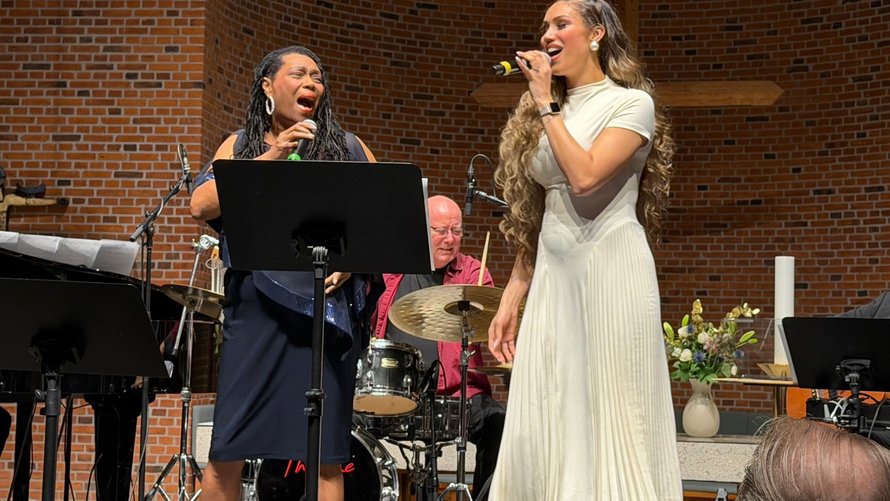Et af koncertens store højdepunkter var Kimona og Sascia – mor og datter fra British Columbia i Canada – som med varme stemmer, swingende gospel og store ballader fyldte kirkerummet med energi og nærvær. Publikum kvitterede med begejstring og stort bifald.