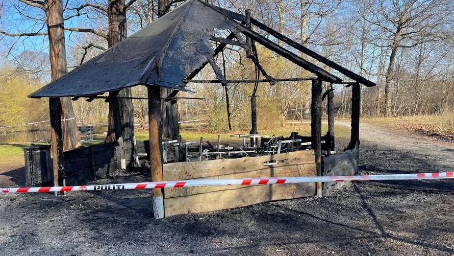 Som det fremgår af billederne, er bålhytten udbrændt.