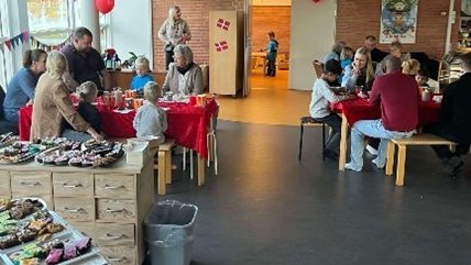 Alle havde været med til at planlægge og gøre klar til dagen. Der var hjemmelavede dannebrogsflag og flagranker, og nogle af børnene havde været med ude og hænge fødselsdagsinvitationer op.