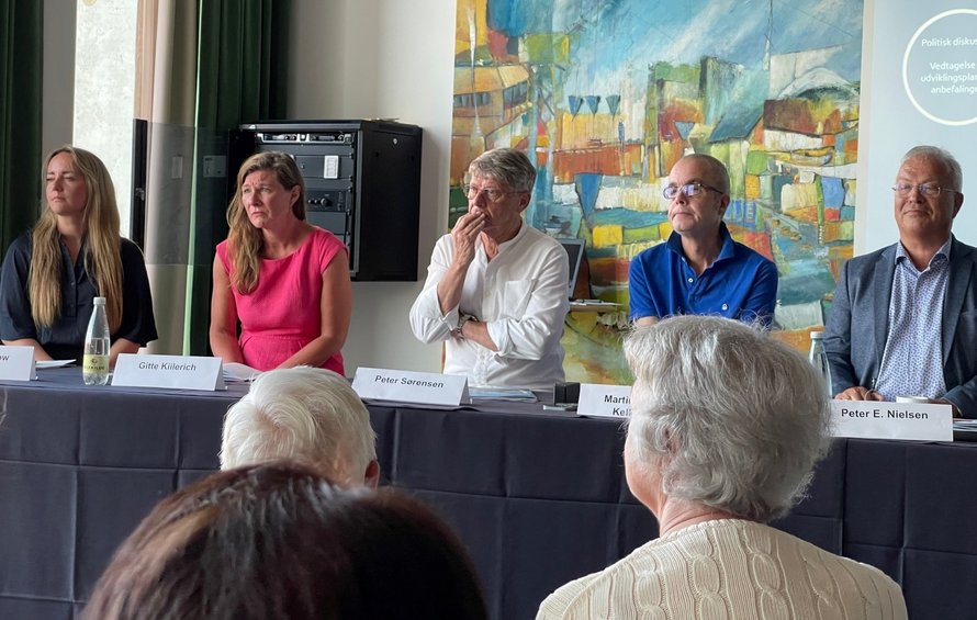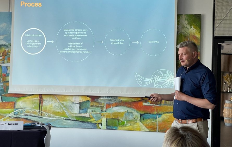 Peter E. Nielsen udtrykte tilfredshed med fremmødet i sommervarmen, men taget i betragtning, at mødet handlede om udviklingen af bymidten i kommunens største by, var der overraskende mange tomme stole i Spar Nord Lounge i Arena Nord.