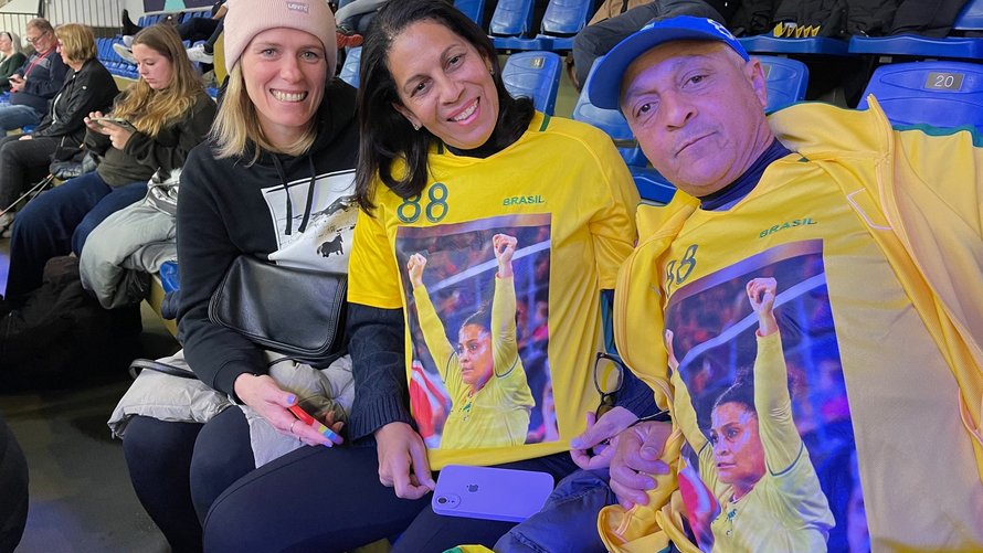 Med sig til Frederikshavn har Mariana Costa sine forældre, Eliana og Adriano Costa. De heppede entusiastisk på det brasilianske landshold, og især datterens scoringer udløste jubel og viften med det brasilianke flag.