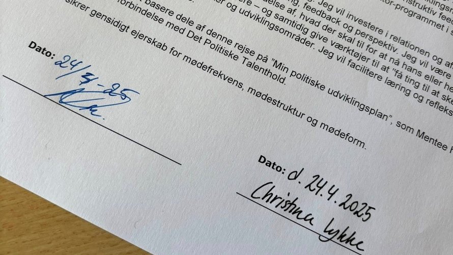 Mentorordningen er en del af Moderaternes talentprogram, men Christina og Nikolaj ser det som langt mere end en formalitet. For dem er det et budskab: