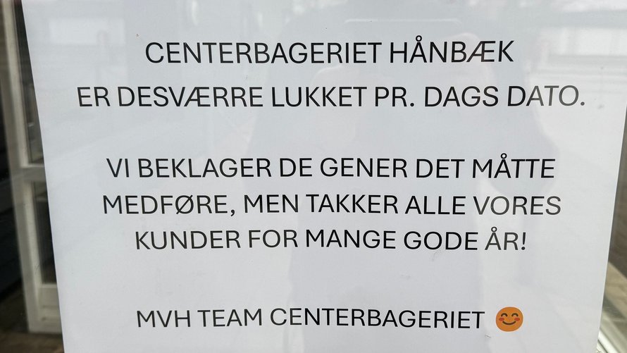"Centerbageriet Hånbæk er desværre lukket pr. dags dato. Vi beklager de gener, det måtte medføre, men takker alle vores kunder for mange gode år".