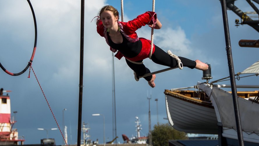 Lørdag og søndag kunne man opleve Cirkus Tordenskrald og de to venskabsklubber Salling Cirkus Kids og Cirkus Liberty fra Nykøbing Mors på havnen i Frederikshavn og i masterne på skibet Marilyn Anne.