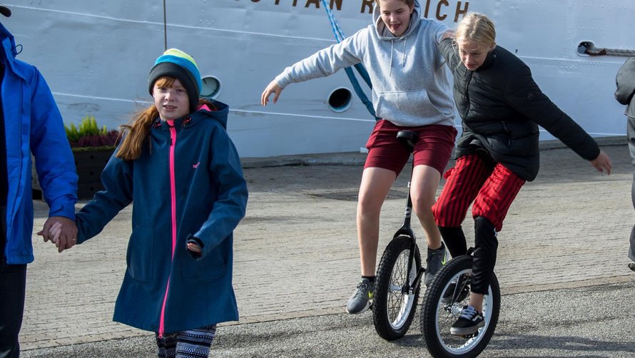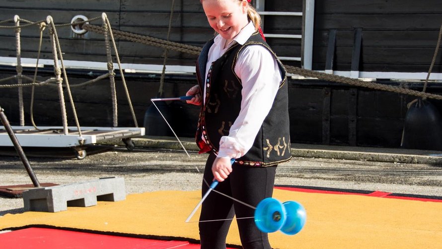 Den nystartede cirkusklub i Frederikshavn trodsede nemlig vejret og optrådte på havnen i forbindelse med Frederikshavn 200 års købstadsjubilæum.