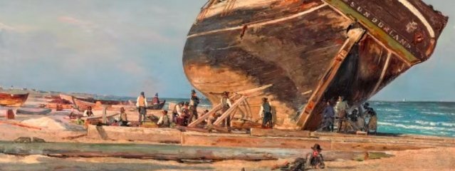 Maleriet fra 1847 bærer titlen "Et stort skib under kalfatring ved Frederikshavn" og var et af auktionens højdepunkter
