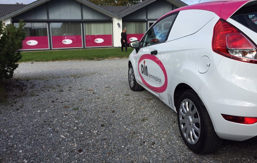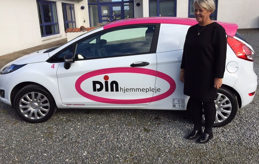 Indehaver Dorte Simonsen har leaset 13 biler hos Brødrene Hosbond i Hjørring, hvor hun åbnede en afdeling, da hun blev udelukket fra at arbejde i Frederikshavn. Din Hjemmepleje beskæftiger 35 medarbejdere i Hjørring, så samlet har Dorte Simonsen næsten 100 på lønningslisten.