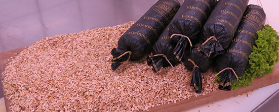 Den store spegepølse er blandt andet smagt til med konjak.
