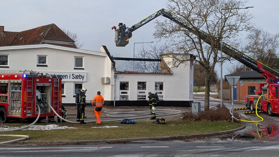 Hverken mennesker eller dyr kom til skade, men der skete stor skade på bygningen.