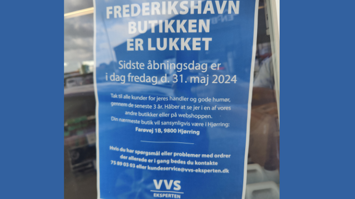 VVS-Eksperten har lukket sin butik på Toftegårdsvej i Frederikshavn. Sidste åbningsdag var fredag 31. maj.