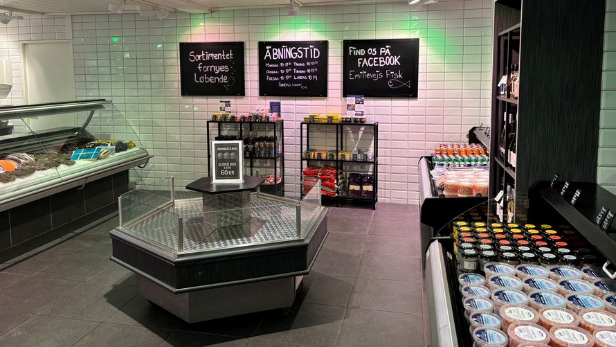 Drejer man vejen forbi den nye forretning byder den på fiskefrikadeller, røget laks og fersk fisk fra lokale aktioner.