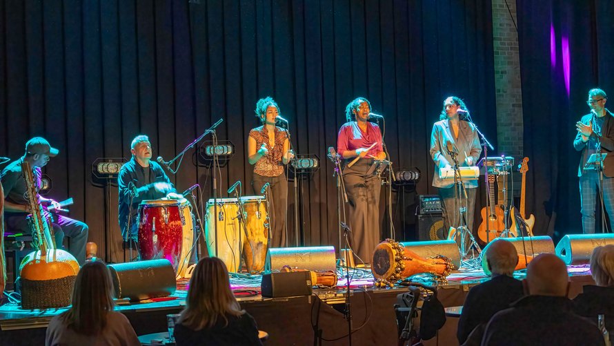 Koncerten begyndte med, at Jobarteh lagde for på koraen, mens Raisa Castro foredrog på spansk – efterhånden faldt så alle ind, og rytmerne tog til i intensitet.