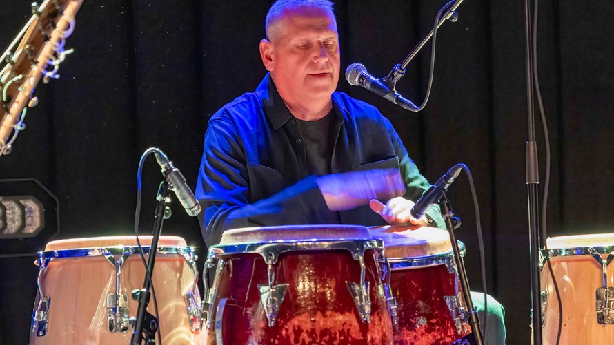 Det var en fornøjelse at se, hvordan samspillet i gruppen fungerede i præcise rytmiske arrangementer, hvor percussiondelen betog med forrygende tempi og forskelligartede rytmeinstrumenter.
