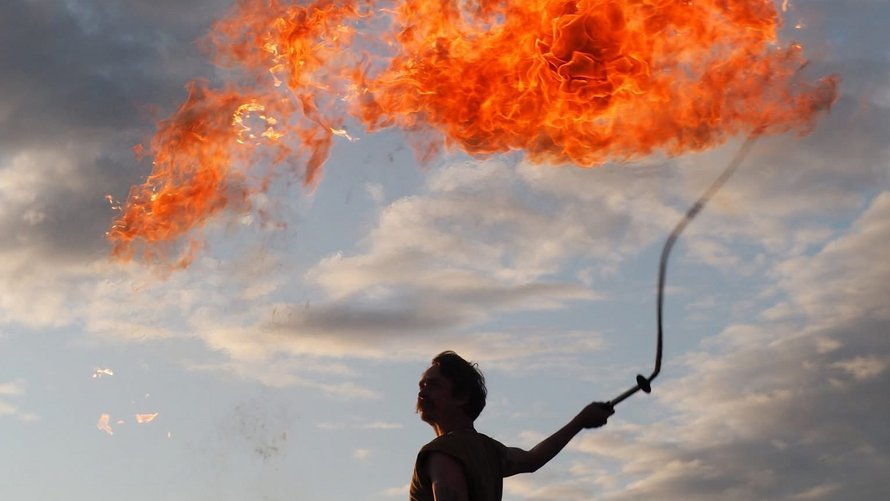 Hver aften blev afsluttet med et spektakulært ildshow - med fakirkunst, poi, ildhatte og ildpiske - udført af foreningens dygtige medlemmer. Alle ildshows var velbesøgte.