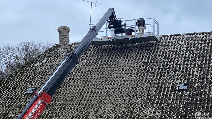 Renoveringen af Ellinggård er et super spændende, men også langstrakt projekt med mange sten i vejen. Men fredag morgen skete der noget for alvor. Nogle af stenene blev simpelthen taget ned, nemlig stenene på de to vestligste skorstenspiber, der truede med at styrte ned og forårsage endnu større skade på den i forvejen medtagne bygning.