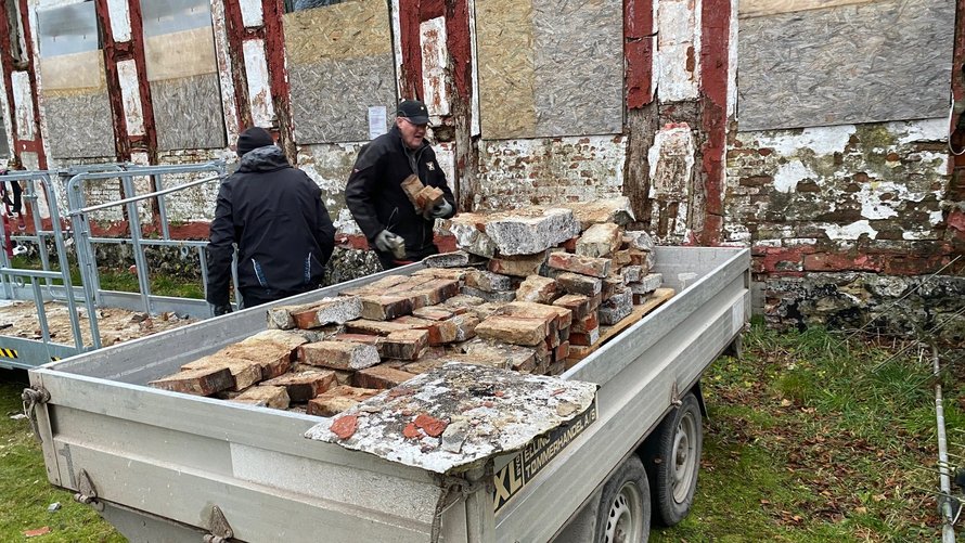 Stenene skal så vidt muligt anvendes igen, og derfor hjalp Ellinggårds Venner med til at fjerne og opbevare stenene til senere genbrug.
