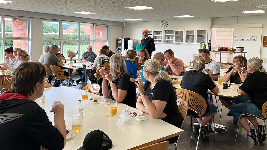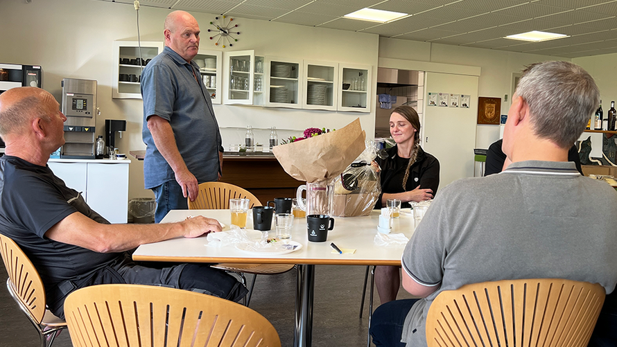 Fredag 1. september blev Jørgen Kiel Clausen fejret på kontoret i Frederikshavn med morgenmad i selskab med sine kollegaer. Henrik Brandt og Jørgen Kiel Clausens egen datter, Line Blanner Clausen, som også er ansat hos Dafolo, holdt taler med flotte, positive ord om hans tid i virksomheden både på det faglige og sociale plan.