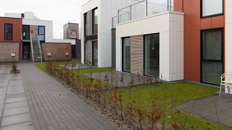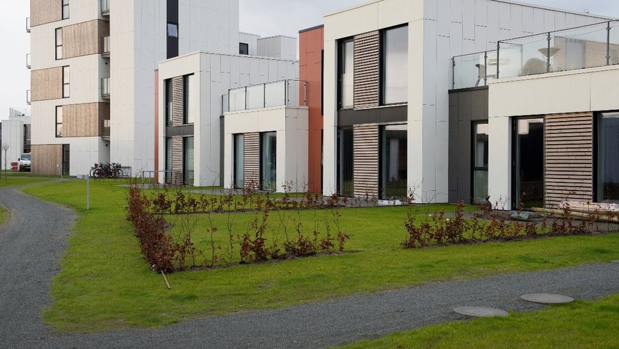 - Helt fra begyndelsen var ideen at skabe et spændende boligområde med oplevelser omkring hvert hjørne – lige meget hvor man går, står eller sidder skal udformningen af bebyggelsen berige øjet med nye indtryk. Selvom omgivelserne har været en udfordring, så har de i den grad også været projektets styrke, fordi de har været med til at skabe et unikt og oplevelsesrigt boligområde, fortæller Lars Sønderskov.