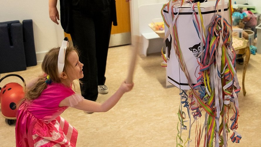 Bare halvanden time senere fyldtes lokalet af fastelavnsudklædte børn og voksne til børneklubbernes tøndeslagning. Her blev der fortalt historien om Kong Midas og hvor meget, han elskede guld. Men da hans eneste datter blev til en guldstatue, måtte han tænke over, om guld virkelig var det vigtigste i verden.