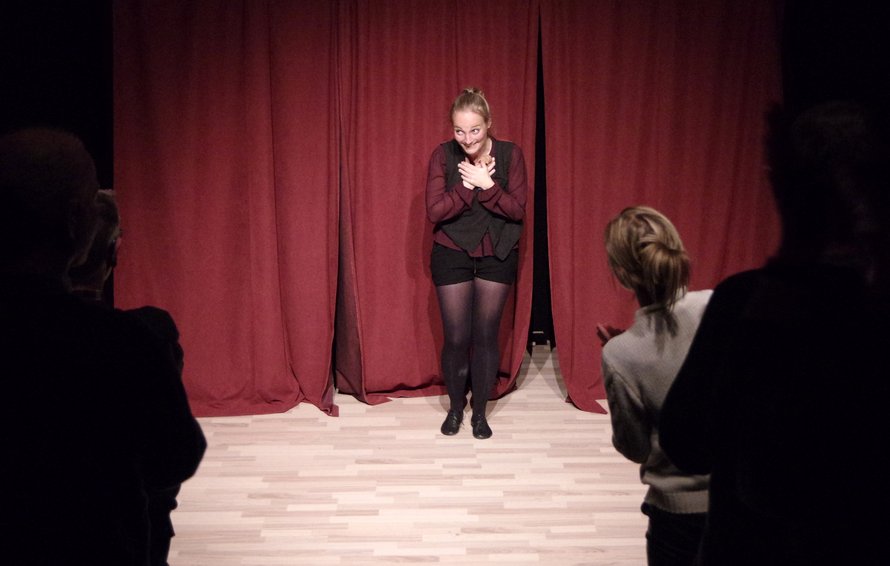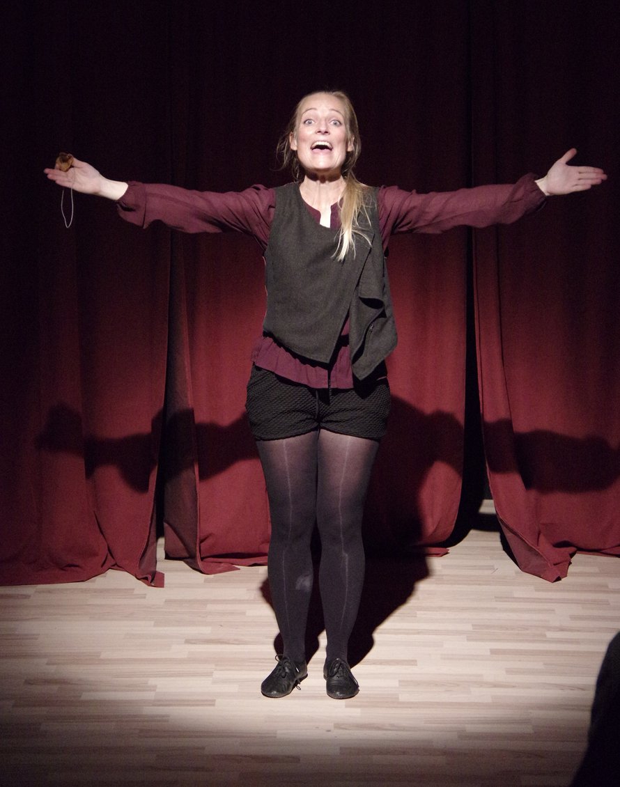 Mette Rønne, som for de fleste tv-, film- og teaterelskere er rimelig ukendt, er eneste medvirkende i stykket, men det gør bestemt ikke noget. På trods af sin spinkle skikkelse fylder hun rollen og scenen ud med en passion for sit håndværk, som gør, at vi, som er samlet i denne lille intime teatersal, kommer helt ind i maskinrummet og får den fulde fornemmelse af mimikken og de glæder og smerter, som går igennem de personer, der bliver fremstillet, og som man får den fulde oplevelse af, når publikum er så tæt på aktøren.