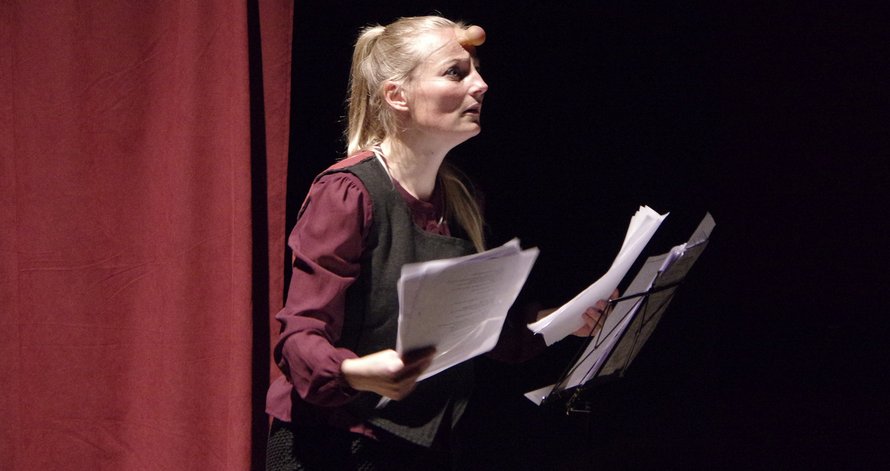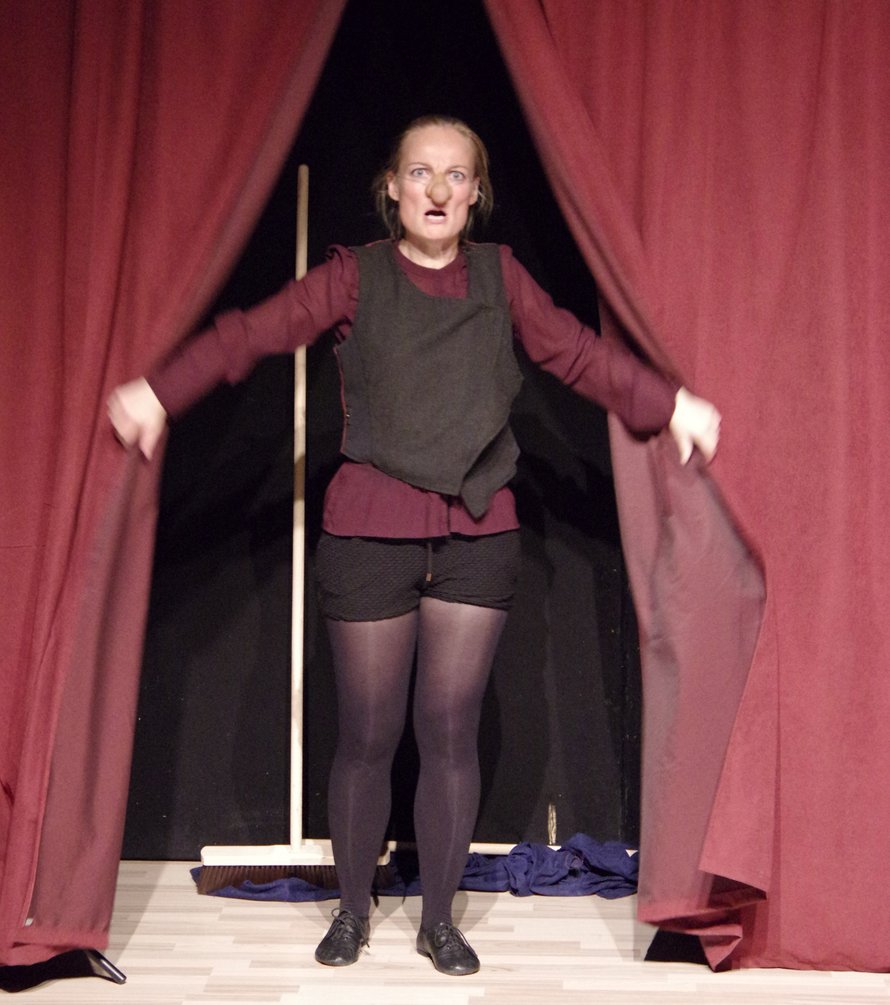 Mette Rønne veksler konstant mellem to roller. De ene med humor og glimt i øjet, den anden med mørkt sind og melankoli. Det i sig selv er en kraftpræstation, og det er nok derfor at stykket i udgangspunktet er skrevet til en mand. Det er første gang, at stykket bliver fremført af en kvinde, hvilket absolut virkede rigtigt og på sin plads. Læg dertil, at alle rekvisitter er imaginære på nær en pude, en kost og et nodestativ, hvilket stiller umådeligt store krav til skuespilleren i sin evne til at få os til at forestille.