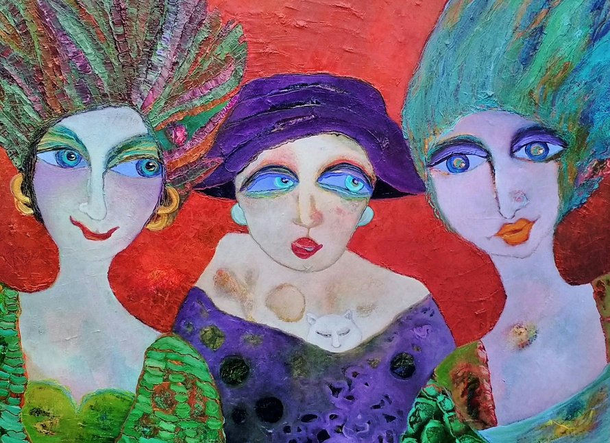 - Mit maleunivers består mest af kvinder - forventningsfulde - underfundige – tænksomme, kombineret med andre væsner, blomster, planter, krukker og landskaber. Jeg maler i mange lag og starter med flere lag akrylmaling, inden oliemalingen afslutter maleriet, siger Anne Lindhardt.