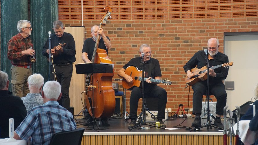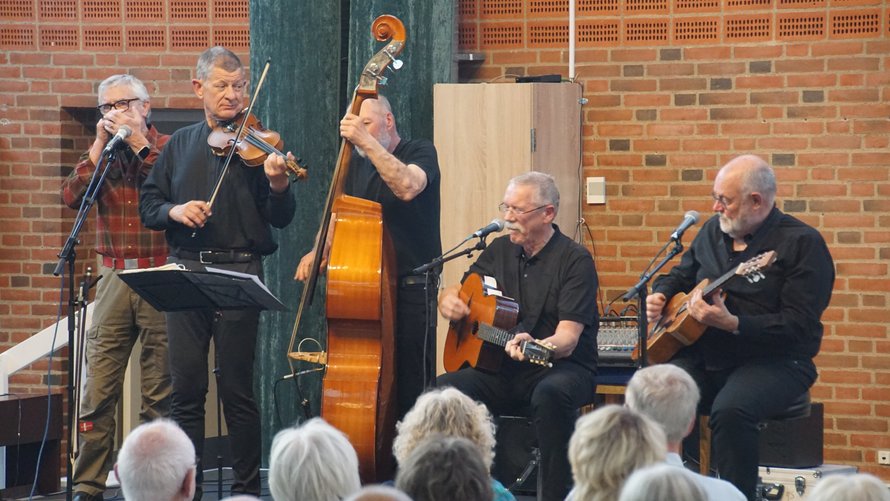 Foran 150 begejstrede gæster i Rådhuscentret i Frederikshavn leverede bandet en veloplagt præstation, som mange gange blev belønnet med taktfaste klapsalver fra publikum.