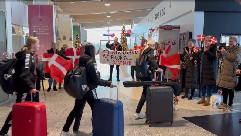 Der var masser af dannebrogsflag og sejrsråb i Aalborg Lufthavn, da de danske floorball-kvinder tirsdag formiddag vendte hjem fra VM i Singapore. Det danske landshold – med otte spillere fra Frederikshavn Blackhawks i truppen - spillede sig noget overraskende helt frem til en ottendeplads. Det blev i den grad fejret ved deres hjemkomst.