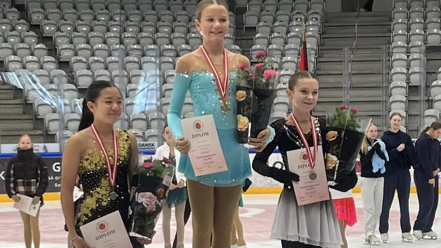 I Novice K1 (13-16 år) vandt Astrid Uggerhøj Schioldan bronze. Også Astrid har fået lavet et nyt smukt program og kjole, som passer perfekt til hende. I samme række var der også comeback til Caroline Hagen Dam, som har holdt pause fra skøjteløbet, og som derfor ikke har stillet op til en konkurrence i mere end to år.