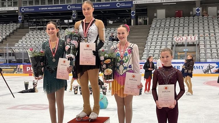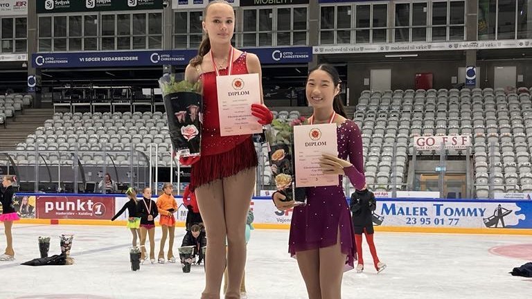 Astrid Møller Carlsen og Sara Maya Pruteanu, som begge er 13 år, er netop rykket op i Novice M, hvor man må være helt op til 16 år. Som førsteårs i rækken gjorde pigerne det godt. Astrid lå efter det korte program nummer to med Sara Maya lige bagved på en tredjeplads. I det lange program var Astrid dog lidt udfordret med flere af dobbeltspringene og landede lige uden for podiet på en samlet fjerdeplads, mens Sara Maya avancerede til en samlet andenplads. Begge piger har fået lavet nye lange programmer, som viser den forskellighed, som skøjteprogrammer også kan have. Astrids i den mere seje stil med fede og anderledes bevægelser, og Sara Mayas i den smukke klassiske og yndige stil - men begge programmer utroligt flotte og perfekte til pigerne.