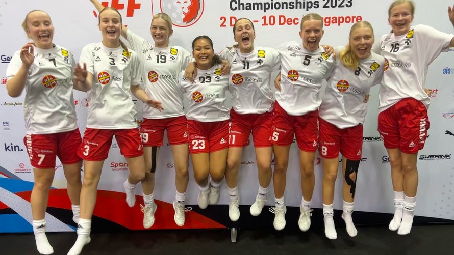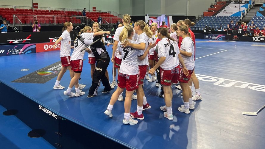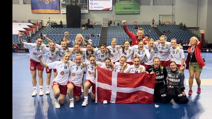 Ved VM i floorball for kvinder i Singapore er Danmark - med otte spillere og cheftræner Søren Frederiksen fra Frederikshavn Blackhawks - overraskende klar til kvartfinalerne. Onsdag vandt Danmark 4-3 over Norge i en intens kamp, der blev afgjort i forlænget spilletid.