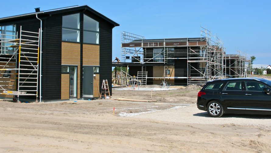 Efter et meget langt tilløb skyder husene nu op i Palm City nord for Frederikshavn. Ét hus er færdigt, og yderligere fire er godt på vej.