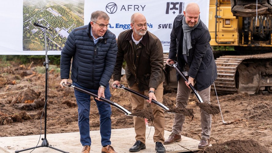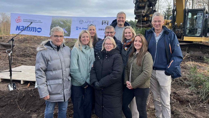 Borgmester Karsten Thomsen var med til at tage det første spadestik sammen med direktør i Nammo Danmark A/S, Jerry Gustavson, og direktør fra Etablissement- og Terrænkommandoen, Henrik Sørensen.