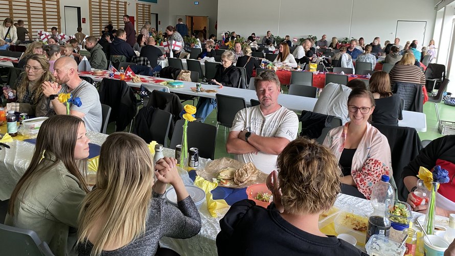 Efter velkomsten spiste klasserne sammen – de yngste i aktivitetssalen og de ældre i takkerne. Hver klasse havde fået mulighed for at dække bord på deres egen måde, og det resulterede i mange hyggelige og kreative spiseområder.